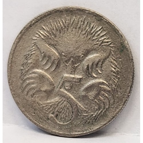 AUSTRALIA 1966 . FIVE 5 CENTS COIN . ERROR . SPLIT PLANCHET . STAMPED ON THIN PLANCHET