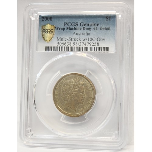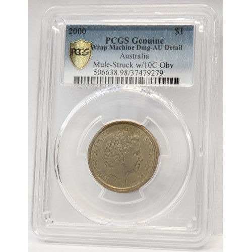 Australia 2000 One 1 Dollar Coin. Error, Mule. Struck on 10cent. PCGS Graded.