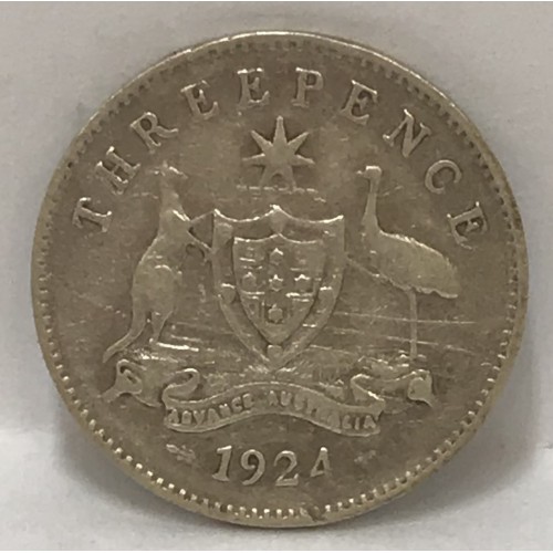 Australia 1924 Threepence. Variety. Very Rare this Range of Die Cracks. Die