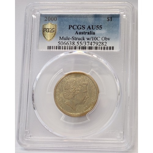 Australia 2000 One 1 Dollar Coin. Error. Mule. Struck on Ten 10 Cents.