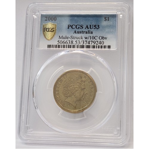 Australia 2000 One 1 Dollar Coin. Error. Mule. Struck on Ten 10 Cents.