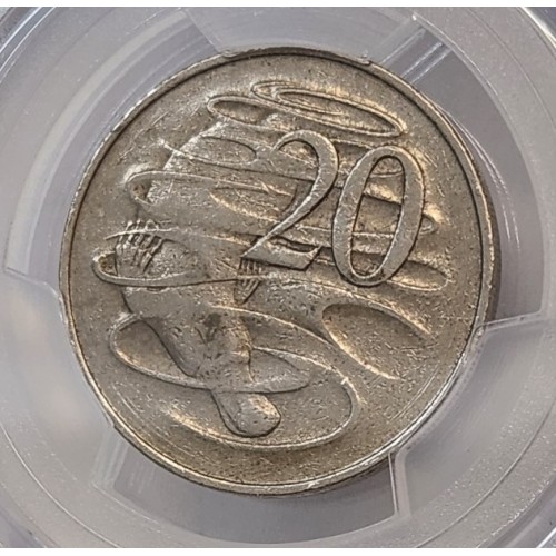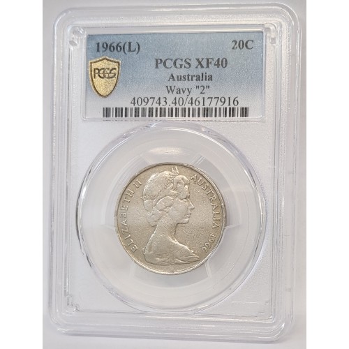 Australia 1966 Twenty 20 Cents Coin. Variety. Wavy 2. PCGS Grade XF40.