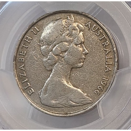 AUSTRALIA 1966 . TWENTY 20 CENTS COIN . VARIETY . WAVY 2 . PCGS XF40