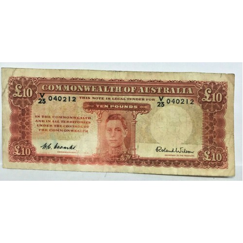 Australia 1952. Ten 10 Pounds Banknote. Coombs/Wilson. Serial: V23 040212.
