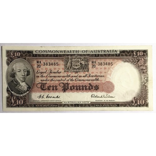 Australia 1959. Ten 10 Pounds Banknote. Serial: WA00 383485. Combs/Wilson.