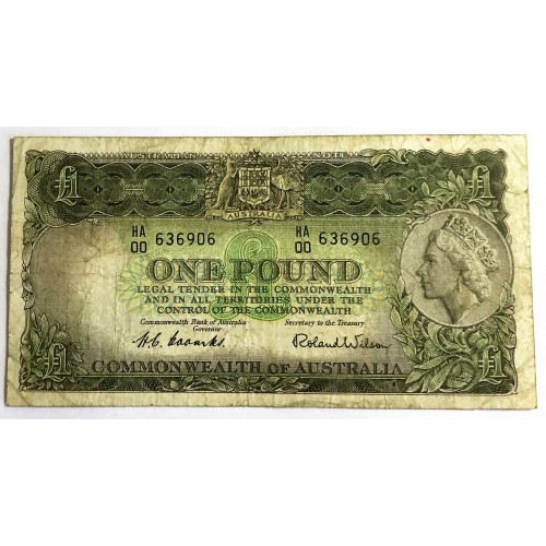 Australia 1953. One 1 Pound Banknote. Serial: HA00 636906. Coombs/Wilson.