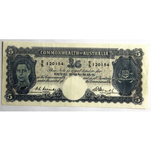 Australia 1949. Five 5 Pounds Bankknote. Serial: S5 120154. Coombs/Watt.