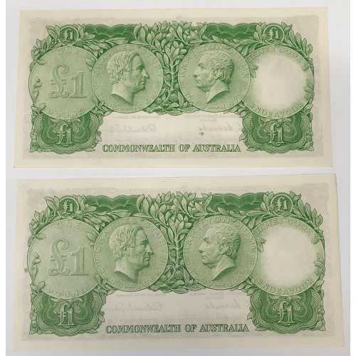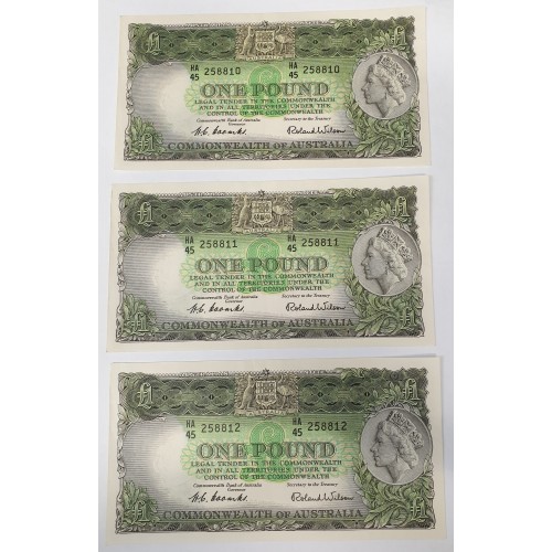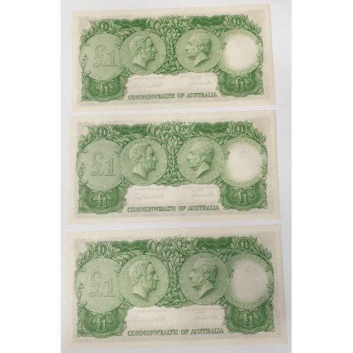 AUSTRALIA 1953 . ONE 1 POUND BANKNOTES . CONSECUTIVE FIVE