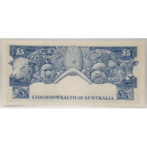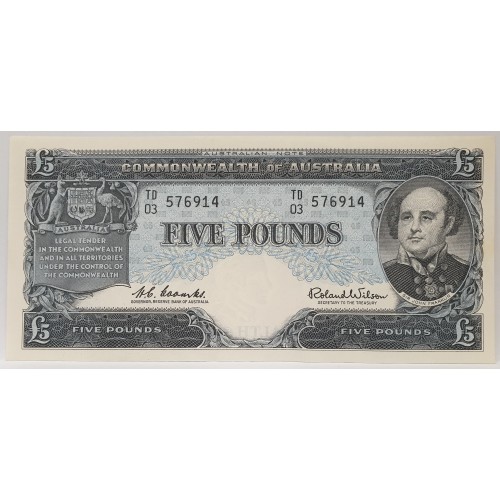 Australia 1960. Five 5 Pounds Banknote. Serial: TD03 576914. Coombs/Wilson.