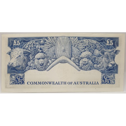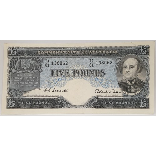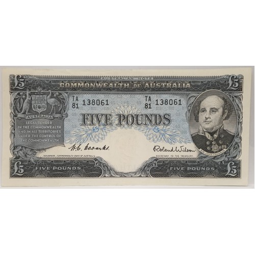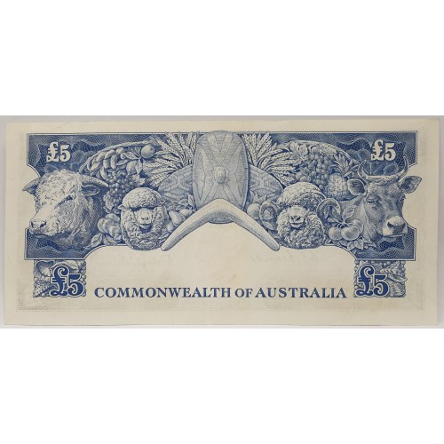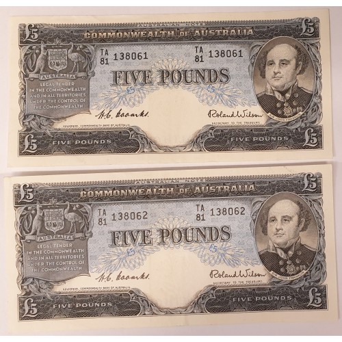 Australia 1954. Five 5 Pounds Banknotes. Serial: TA81 138061-62. Coombs/