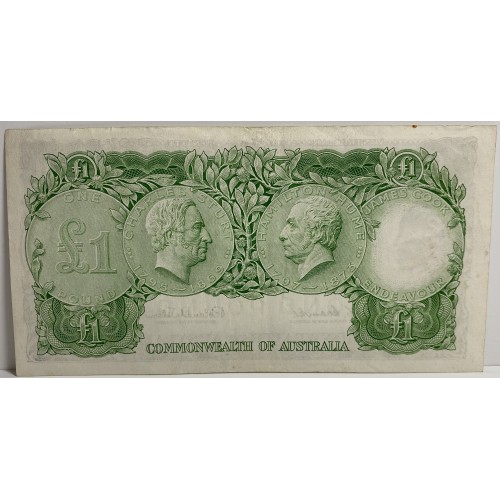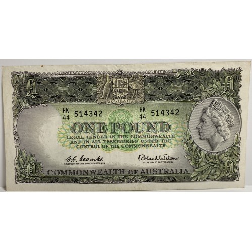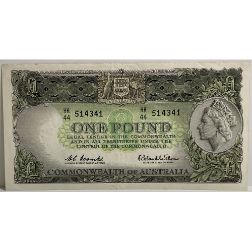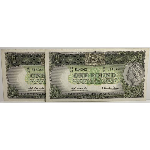 Australia 1961 One 1 Pound Banknotes. Serial: HK44 514341-2. Coombs/Wilson.