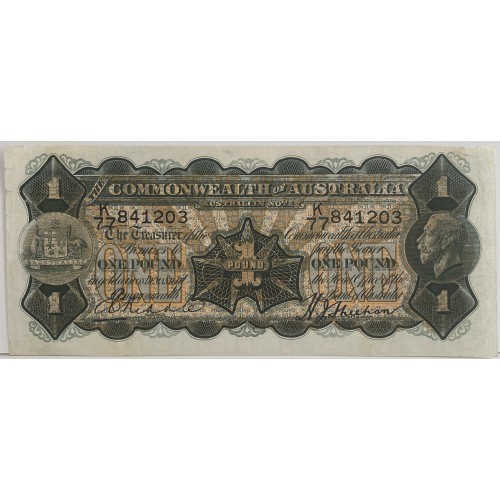 Australia 1932 One 1 Pound Banknote. Serial: K77 841203. Riddle/Shhehan.