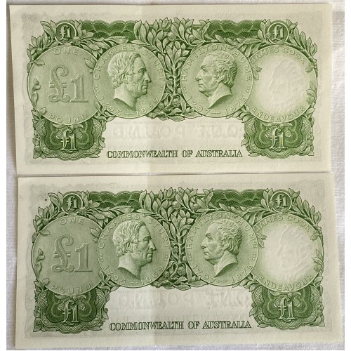 AUSTRALIA 1953 . ONE 1 POUND BANKNOTES . CONSECUTIVE PAIR