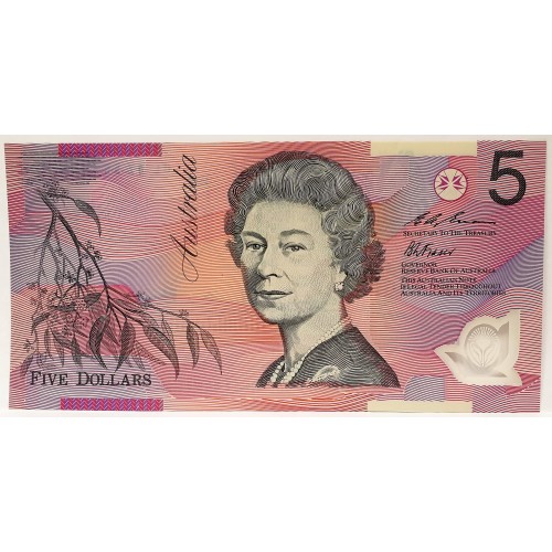Australia 1995/8. Five 5 Dollar Banknote. Evans/Fraser. Serial: DL95587148.