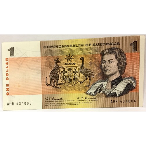 Australia 1967. One 1 Dollar Banknote. Coombs/Randall. Serial: AHR434006.