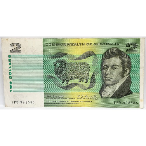 Australia 1967. Two 2 Dollar Banknote. Coombs/Randall. Serial: FPD998585.