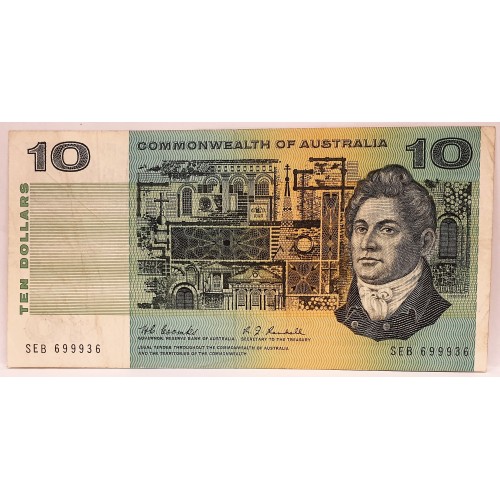 Australia 1967. Ten 10 Dollar Banknote. Coombs/Randall. Serial: SEB699936.
