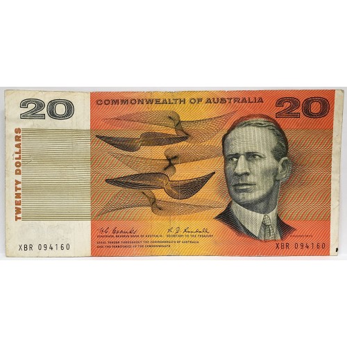 Australia 1967. Twenty 20 Dollar Banknote. Coombs/Randall. Serial: XBR094160.