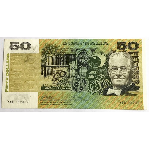 Australia 1974. Fifty 50 Dollars Banknote. Serial: YAA182807. Phillips/Wheeler.