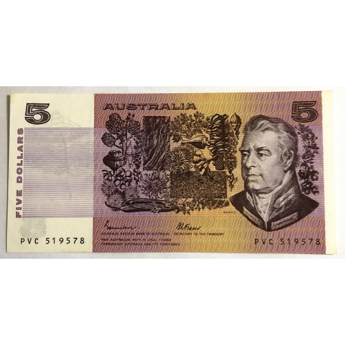 Australia 1985. Five 5  Dollars Banknote. Serial: PVC519578. Johnston/Fraser.