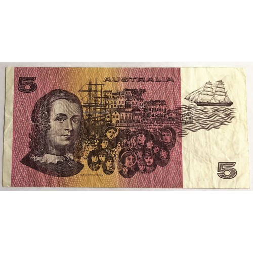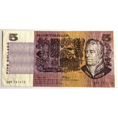 Australia 1985. Five 5 Dollars Banknote. Serial: QBH797470. Johnston/Fraser.