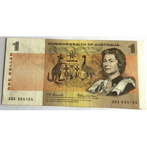 Australia 1966. One 1 Dollar Banknote. Serial: AAA884104. Coombs/Wilson.