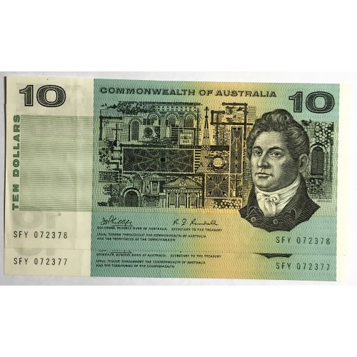 Australia 1968. Ten 10 Dollar Banknotes. Serial: SFY072377-78. Phillips/Randall.