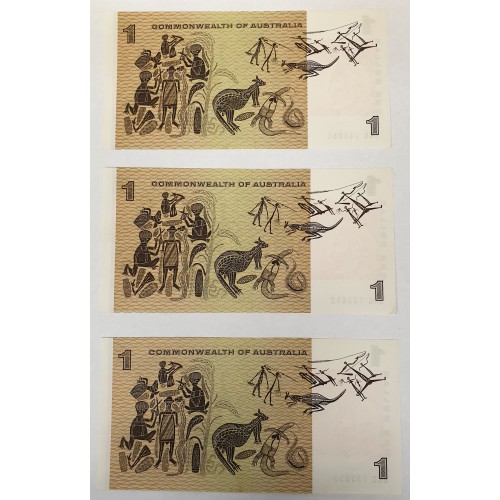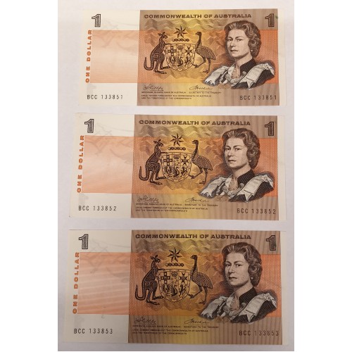 AUSTRALIA 1972 . ONE 1 DOLLAR BANKNOTES . PHILLIPS/WHEELER . CONSECUTIVE TRIO