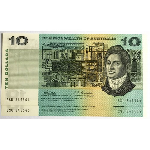 Australia 1968. Ten 10 Dollars Banknote. Serial: SSU 846564-5. Phillips/Randall.