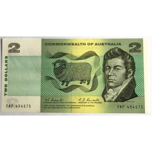Australia 1967. Two 2 Dollars Banknote. Serial: FKP494675-6. Coombs/Randall.