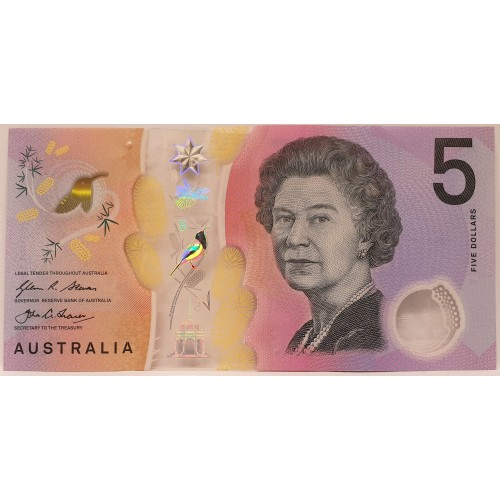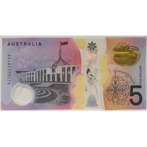 Australia 2016. Five 5 Dollars Banknote. Serial: AJ162450111. Stevens/Lowe.