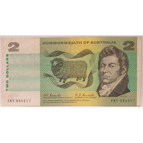 Australia 1967.Two 2 Dollars Banknote. Serial: FKY884617. Coombs/Randall.