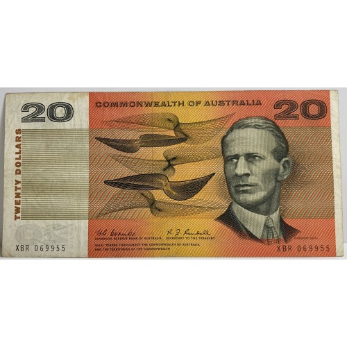 Australia 1967 Twenty 20 Dollars Banknote. Serial: XBR069955. Coombs/Randall.