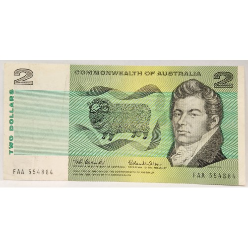 Australia 1966 Two 2 Dollars Banknote. Serial: FAA554884. Coombs/Wilson.