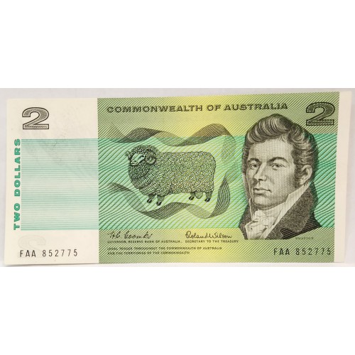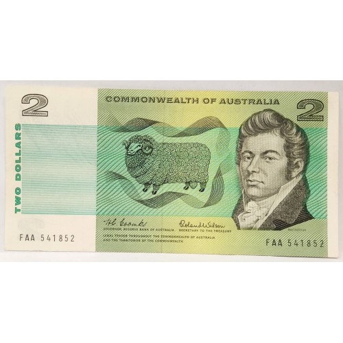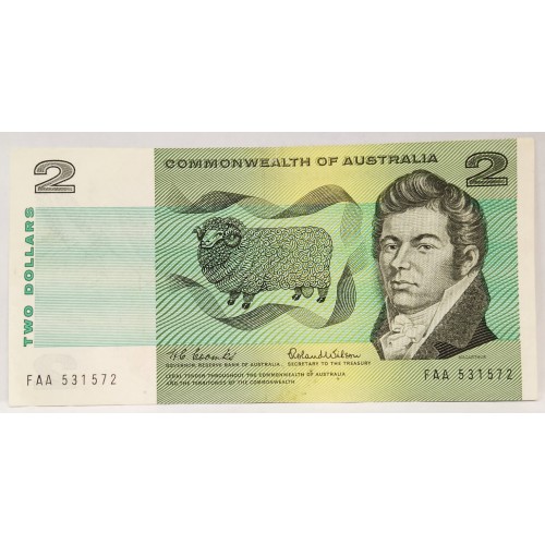 AUSTRALIA 1966 . TWO 2 DOLLARS BANKNOTE . COOMBS/WILSON . FIRST PREFIX FAA
