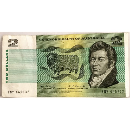 Australia 1967. Two 2 Dollars Banknote.Serial: FNY645632. Coombs/Randall.