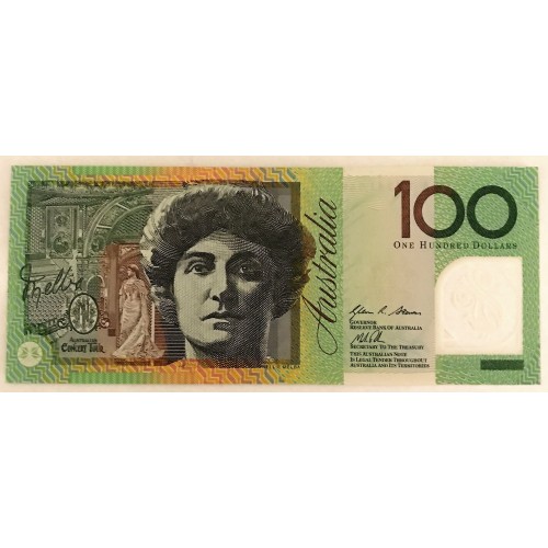 Australia 2013. One Hundred 100 Dollars Banknote. Serial: AA13281647-8.