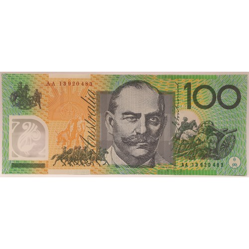 Australia 2013. One Hundred 100 Dollar Banknotes. Serial: AA13920483-5.