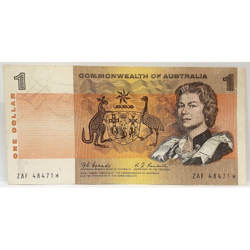 Australia 1967 One 1 Dollar Banknote. Coombs/Randall. Serial: ZAF48471*. Star