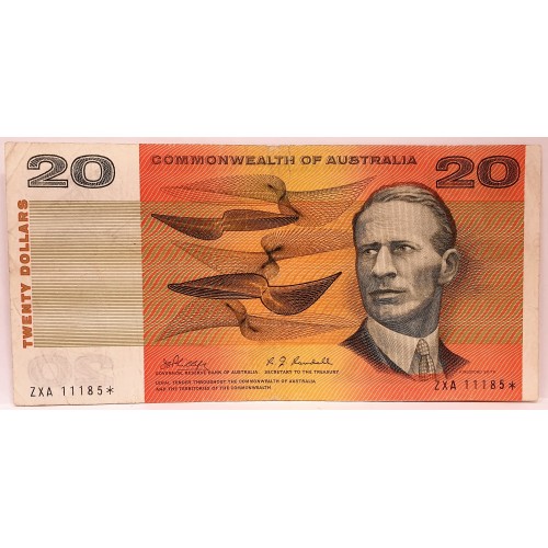 Australia 1968 Twenty 20 Dollar Banknote. Serial: ZXA11185*. Phillips/Randall.