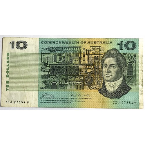 Australia 1968. Ten 10 Dollars Banknote. Serial: ZSJ27554*. Phillips/Randall.