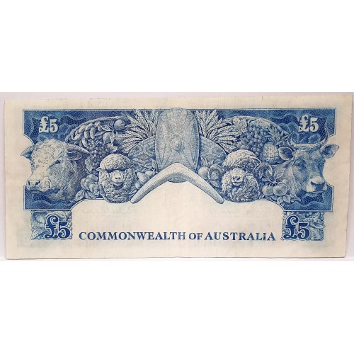 Australia 1960. Five 5 Pounds Banknote. Serial: TC12 85768*. Coombs/Wilson.