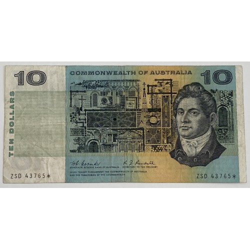 Australia 1967 Ten 10 Dollars Banknote. Serial: ZSD43765*. Coombs/Randall.