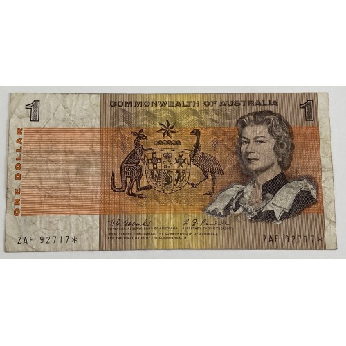 AUSTRALIA 1967 . ONE 1 DOLLAR BANKNOTE . STAR NOTE . COOMBS/RANDALL . FIRST PREFIX ZAF