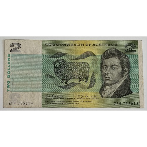 Australia 1967 Two 2 Dollars Banknote. Serial: ZFH79501*. Coombs/Randall.