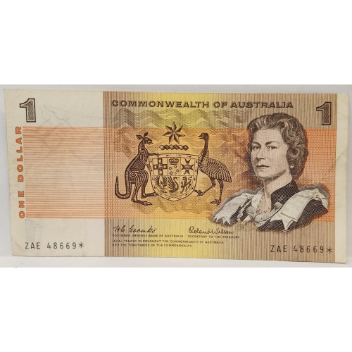 Australia 1966 One 1 Dollar Banknote. Serial: ZAE48669*. Coombs/Wilson. Star