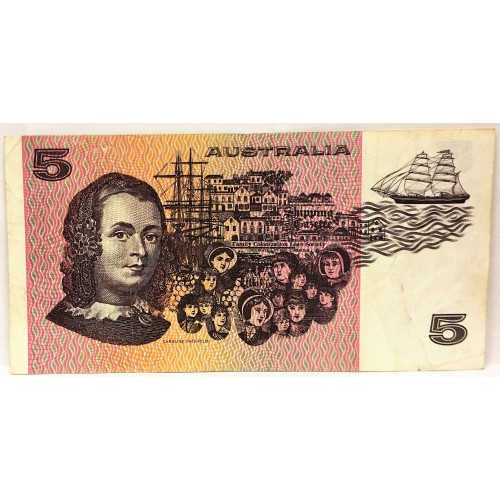 AUSTRALIA 1974 . FIVE 5 DOLLAR BANKNOTE . ERROR . MISSING COLOUR SIMULATIONS