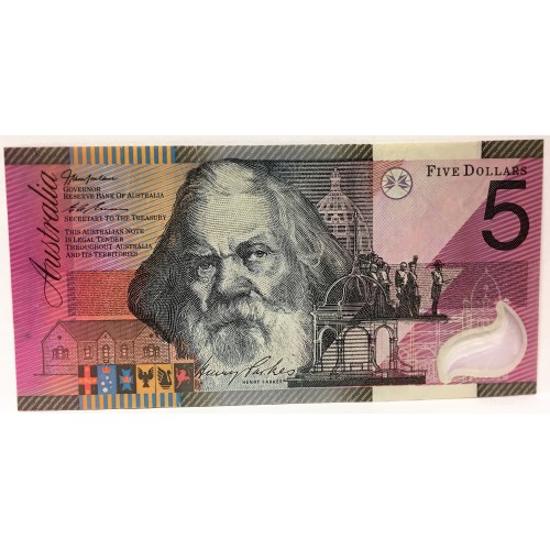 Australia 2001. Five 5 Dollar Banknote. McFarlane/Evens. Serial: EB01594708.