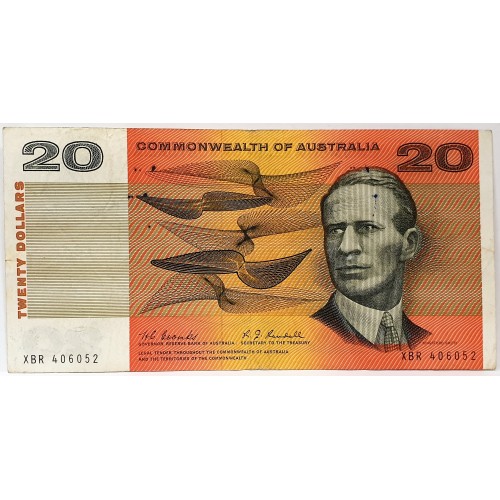 Australia 1967. Twenty 20 Dollar Banknote. Coombs/Randall. Serial: XBR406052.