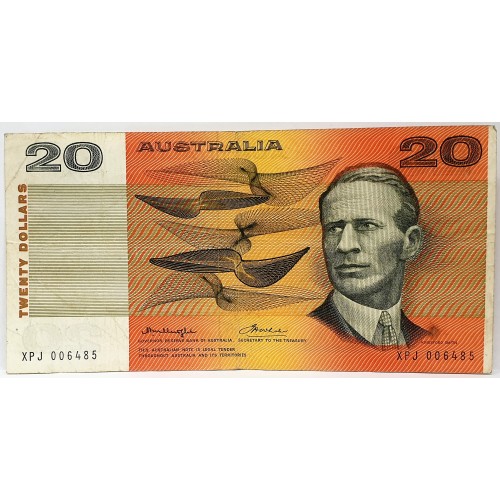 Australia 1976. Twenty 20 Dollar Banknote. Knight/Wheeler. Serial: XPJ006485.